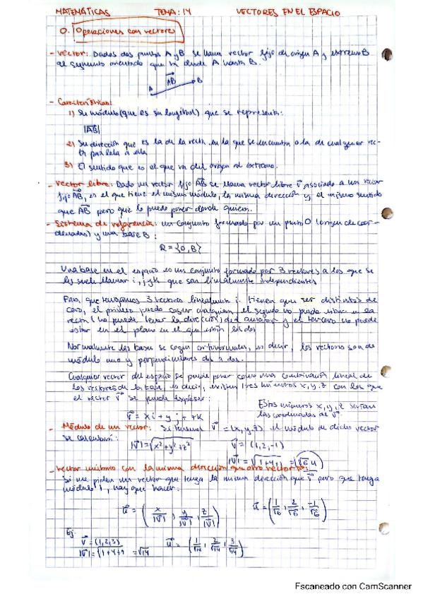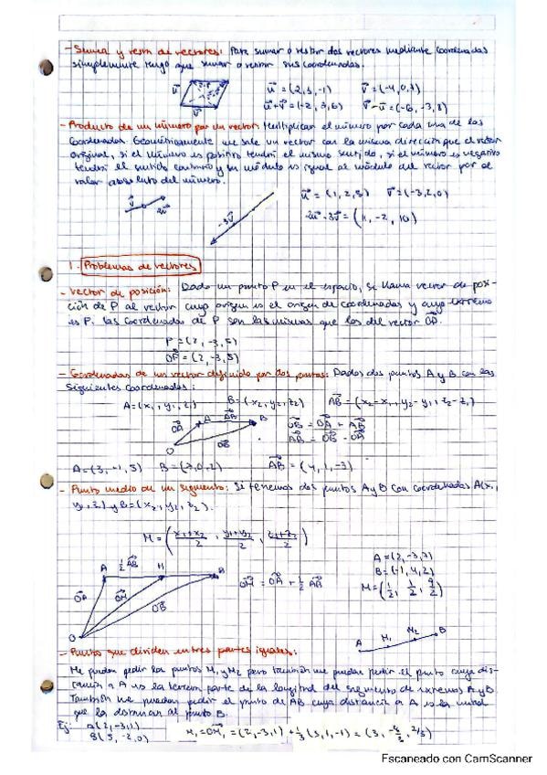 Apuntes del tema de vectores en el espacio con ejemplos para la mejor comprensión de la teoría.