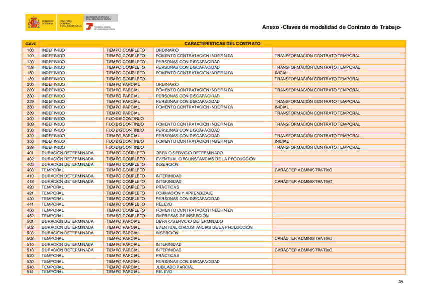 codificación contratos de trabajo