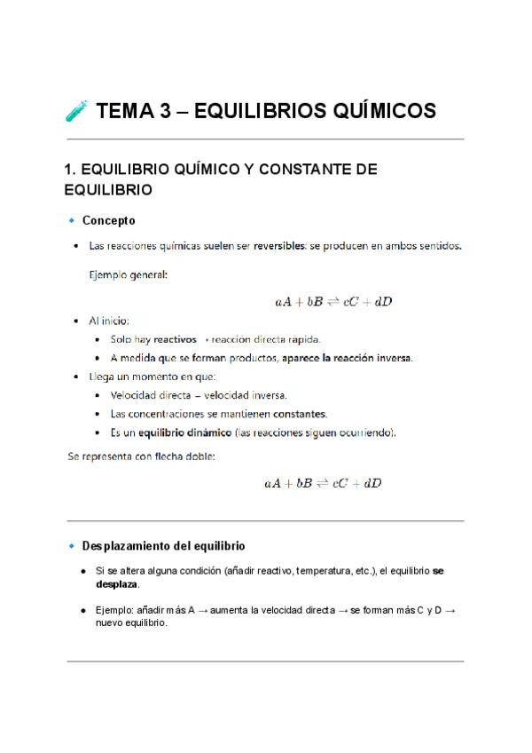 Apuntes Tema 3 - Equilibrios Químicos de Fundamentos Químicos de la Ingeniería Civil (UA).