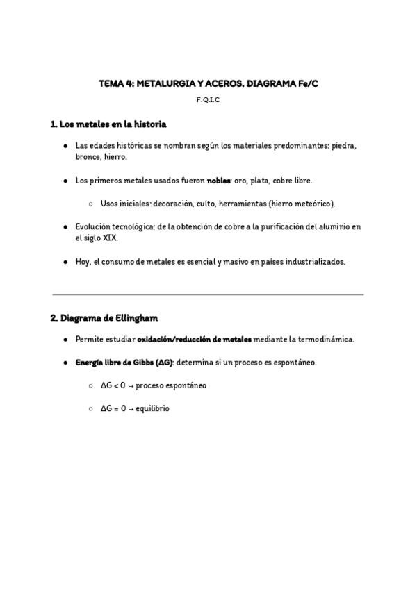 Apuntes Tema 4 - Metalurgia y aceros. Fundamentos Químicos de la Ingeniería Civil (UA).