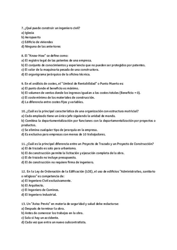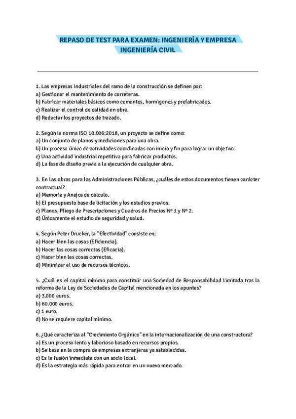 Repaso de examen tipo test de Ingeniería y Empresa.