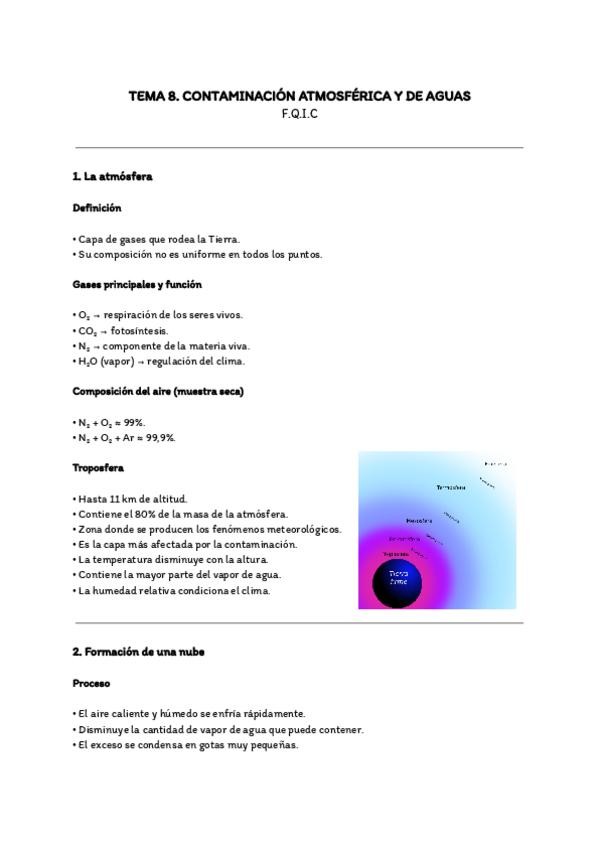 Resumen Tema 8-Contaminación atmosférica y de aguas. Fundamentos Químicos de la Ingeniería Civil (UA).