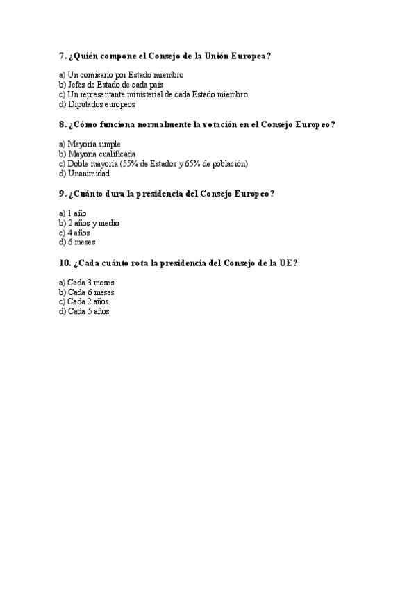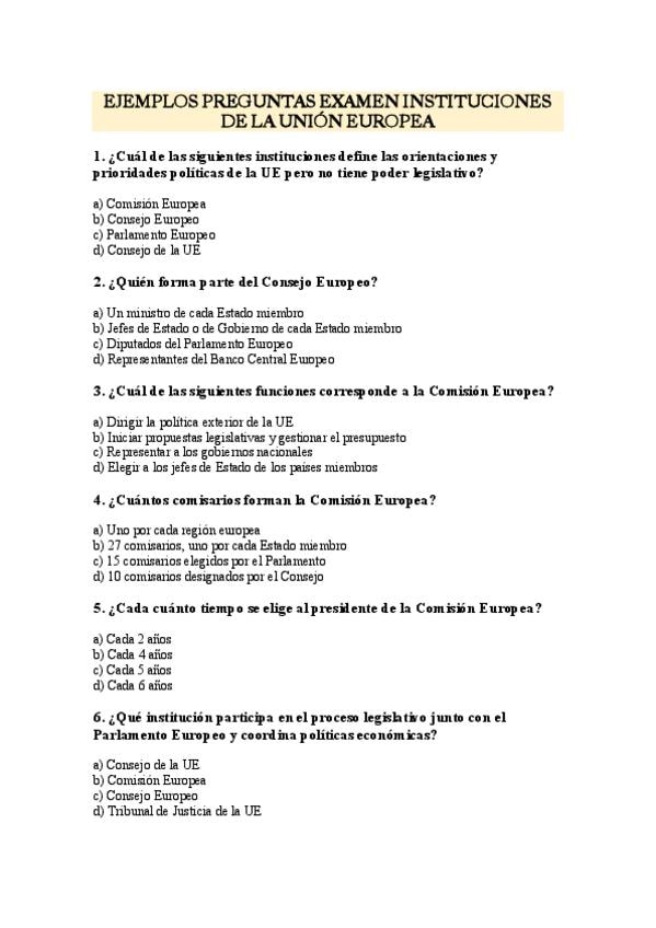 Preguntas tipo exmaen que sirven para distinguir las tres insituciones de la UE