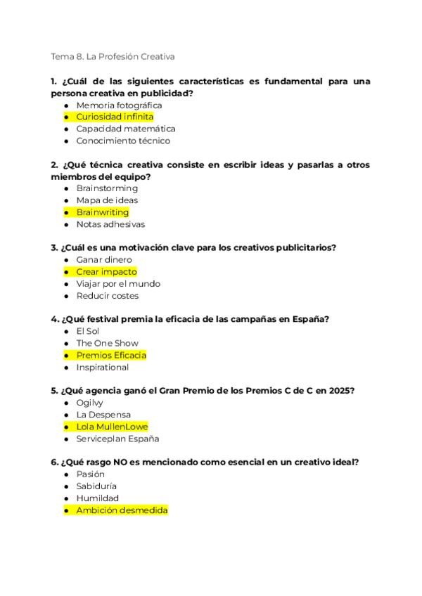 He publicado nuevos examenes de 3º Estrategia Creativa y Conceptualización: PREGUNTAS-TIPO-TEST-TEMA-8.pdf