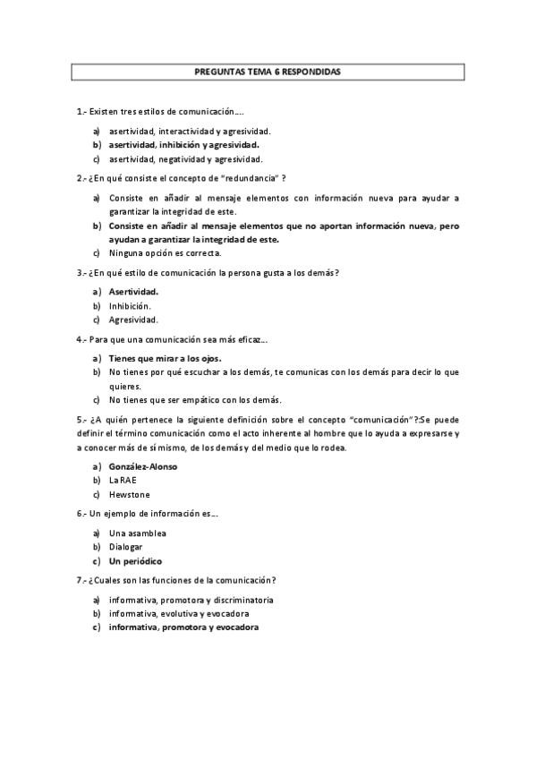 Preguntas tipo test sobre los temas para el segundo parcial (6-10) de Psicología social (CON RESPUESTAS)