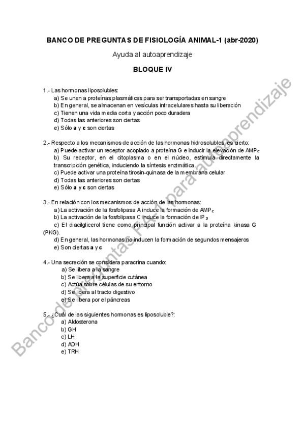 He publicado nuevos examenes de 2º Fisiologia Animal I: Bancos Sin Corregir