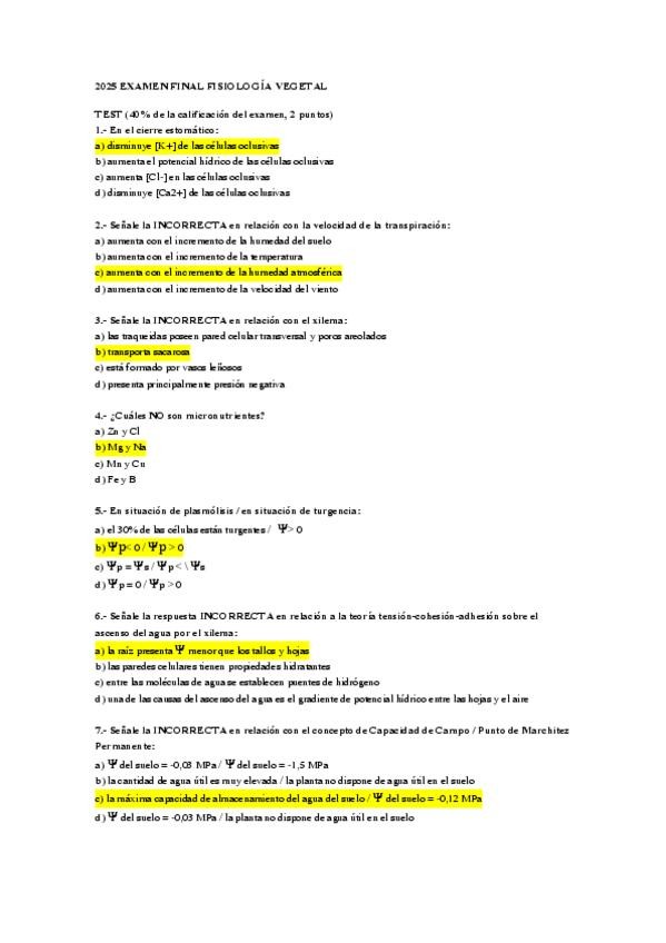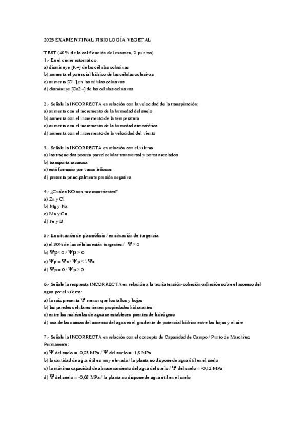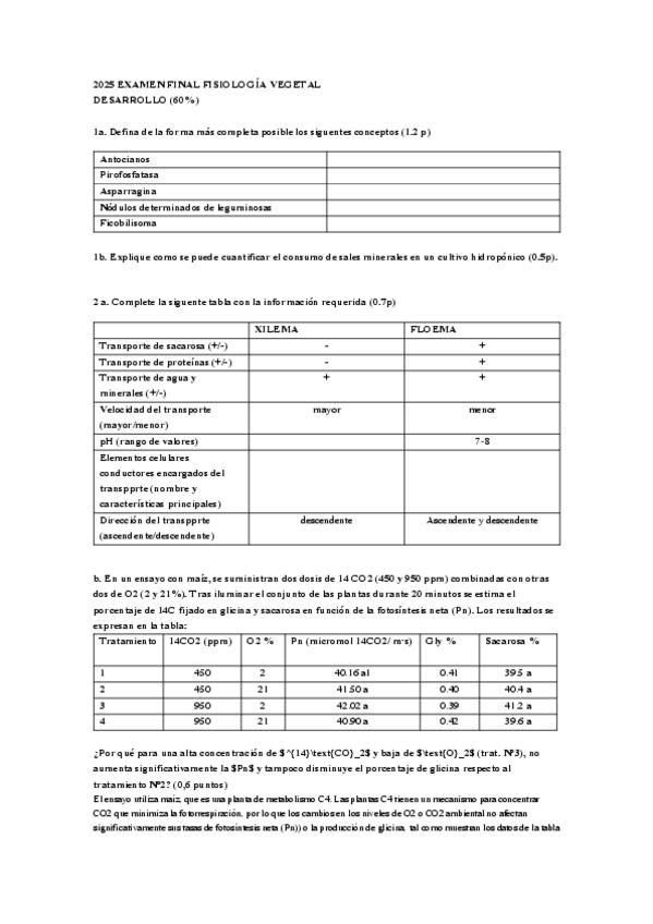 He publicado nuevos examenes de 2º FISIOLOGÍA VEGETAL: NUTRICIÓN, TRANSPORTE Y METABOLISMO: EXÁMENES FV