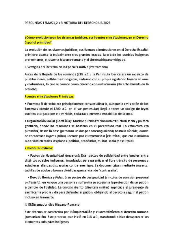 PREGUNTAS TEMAS 1,2 Y 3 HISTORIA DEL DERECHO ESPAÑOL UA