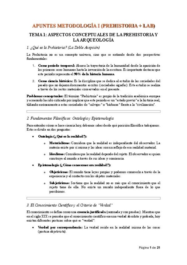 Bloque entero de la parte sobre Prehistoria de la asignatura "de los primeros seres humanos a la Antiguedad" que corresponde al rimer año de carrera. Saqué un 9'5 en el examen usando estos apuntes ;) Incluye el contenido siguiente: 1. La hominización y e