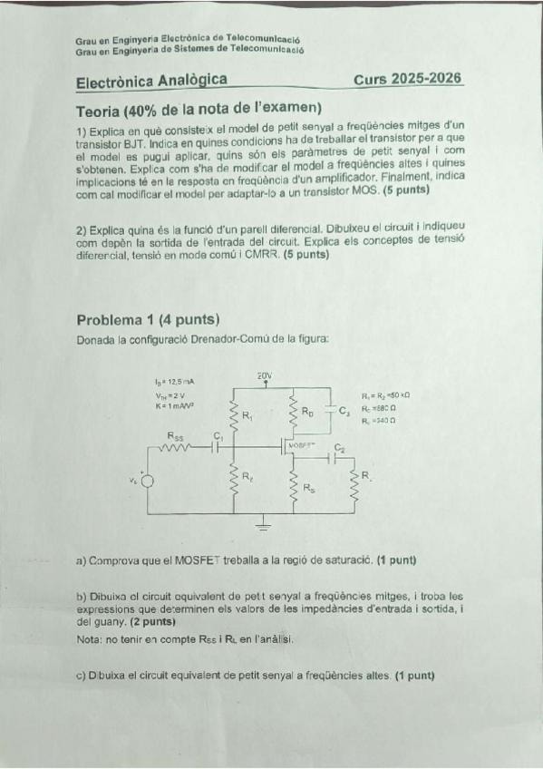 He publicado nuevos examenes de 2º Electrónica Analógica: Parcial-1-EA-Curs-2025-2026.pdf
