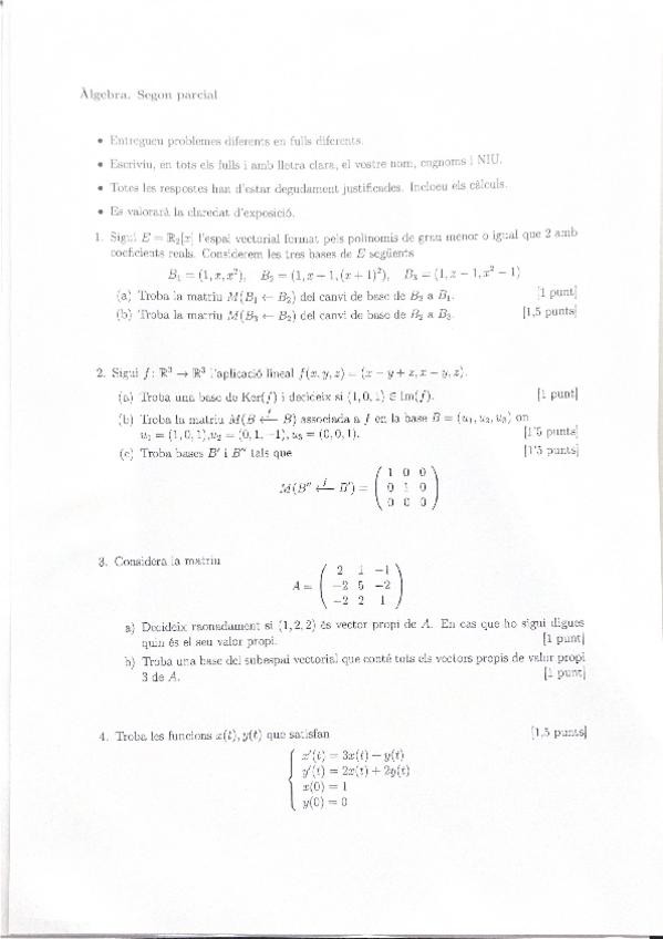 2n Examen parcial de Càlcul (2019), amb les correccions a les pàgines de darrere.