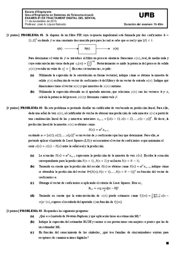 He publicado nuevos examenes de 3º Tractament Digital del Senyal: Parciales 1,2 y recuperaciones