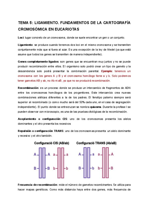 Resumen del tema 5 sobre ligamiento y cartografia cromosómica