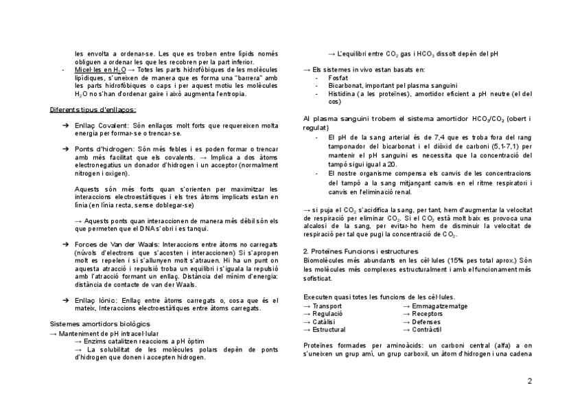Apunts del Tema 2 de Proteïnes (funcions i estructura) de Bioquímica.