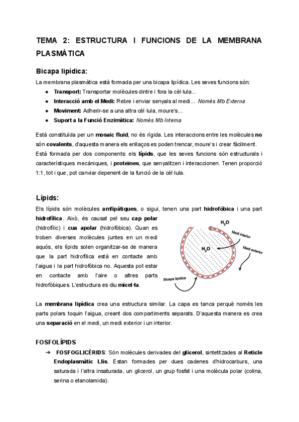 Tema 2: Estructura i funcions de la membrana plasmàtica
