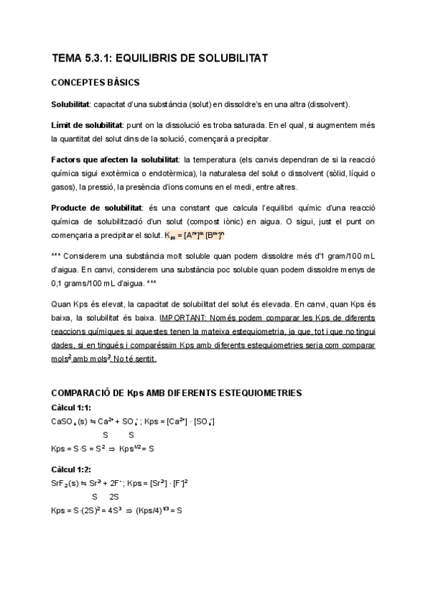 Apunts del Tema 5.3 d'Equilibris de Solubilitat i Precipitació de Química.