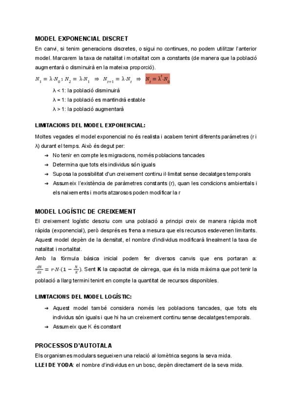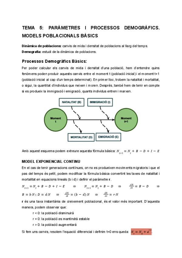Apunts d'ecologia tema 5: paràmetres i processos demogràfics i models poblacionals bàsics.