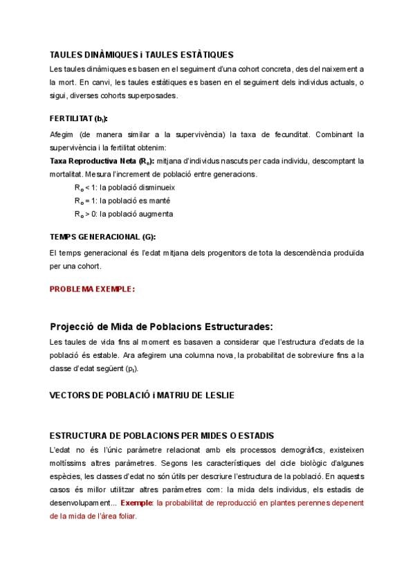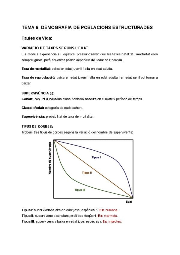 Resum d'ecologia tema 6: demografia de poblacions estructurades.