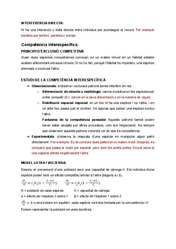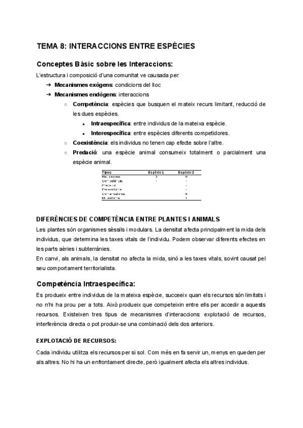 Apunts i exercicis d'ecologia tema 8: Interaccions entre espècies.