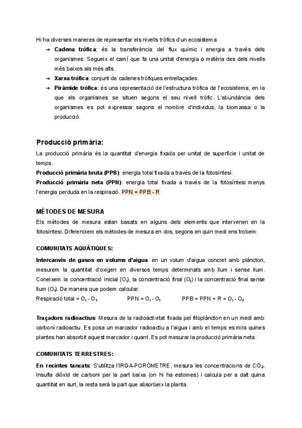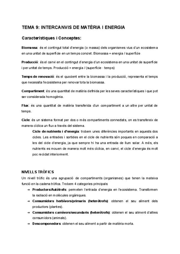 Apunts i exercicis d'ecologia tema 9: intercanvis de matèria.