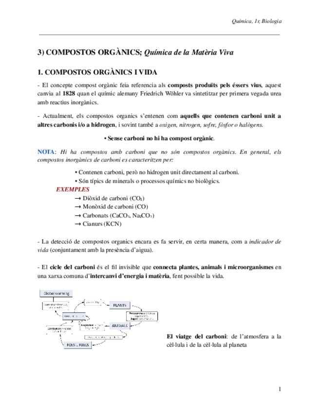 Incolu els temes: TEMA 3: Compostos orgànics. TEMA 4: Reaccions químiques en sistemes biologics. TEMA 5: Termodinàmica. TEMA 6: Equilibri químic. TEMA 7: Àcids, bases i solucions tampó. TEMA 8: Cinètica