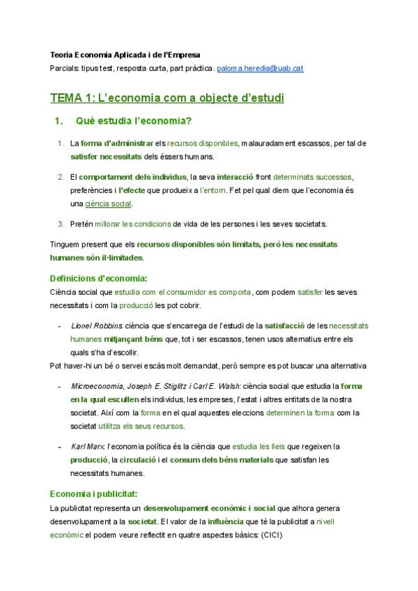 Teoria parcials - Economia Aplicada i de l'Empresa