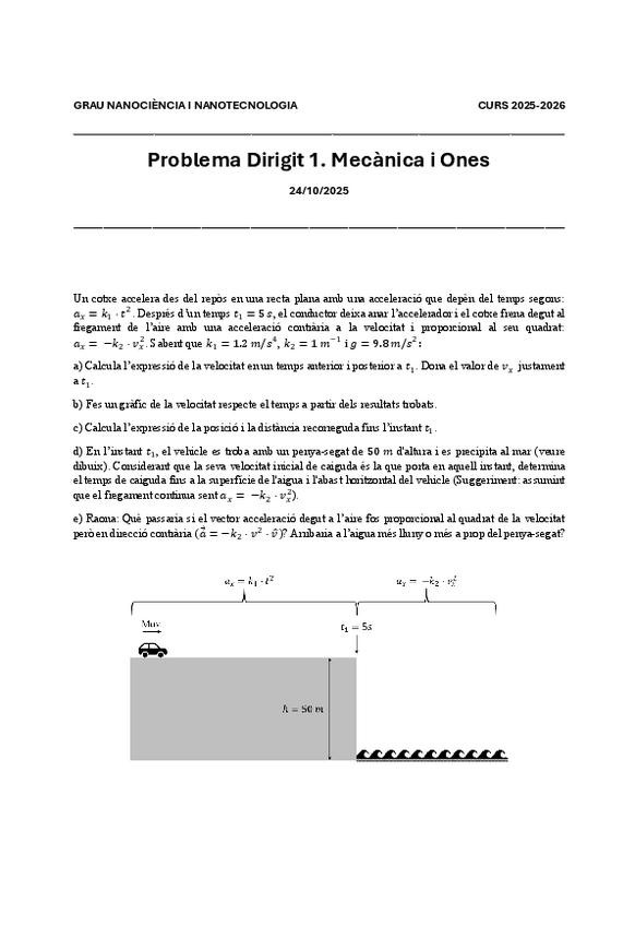 He publicado nuevos examenes de 1º Física General: Mecànica i Ones: Dirigit1MiO25-26.pdf