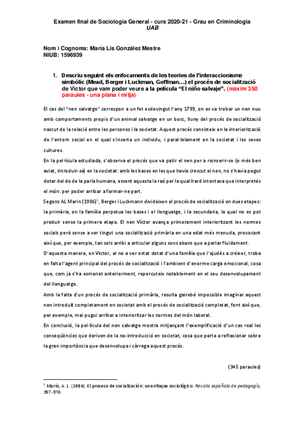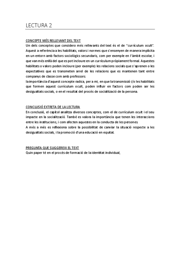 Activitat sobre: Lectura 3. Fernández, Esther (1999). Capítol 2 “La societat (I). El procés de socialització”, de Cardús, Salvador (coord). La mirada del sociòleg: què és, què fa, què diu la sociologia. Barcelona: EDIUOC: Proa, 1999.