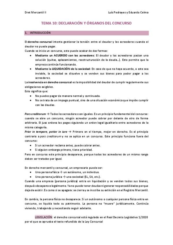 Apunts del tema 10 de dret processal I amb la professora Núria Reynal, complementats amb manual