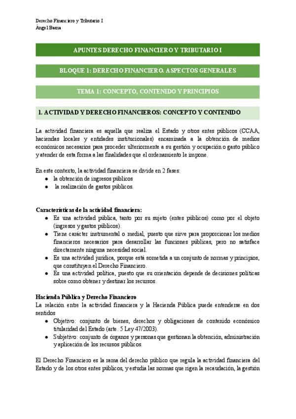Apuntes completos de derecho financiero y tributario I con el profesor Ángel Baena + preguntas test corregidas de los seminarios