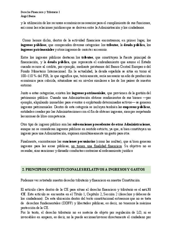 Apuntes de del bloque 2 de derecho financiero y tributario con el profesor Ángel Baena, complementados con manual.
