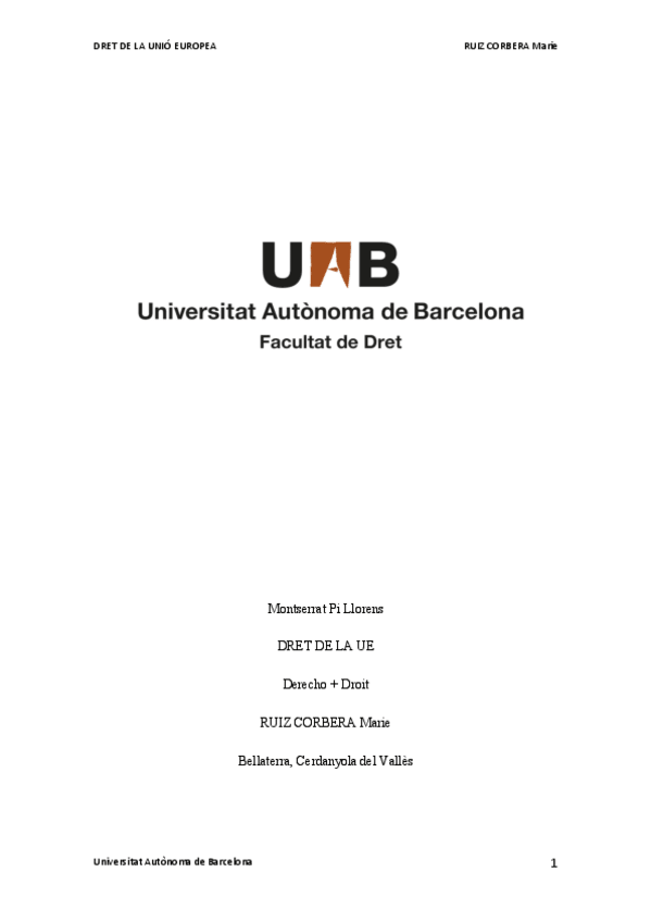 Grado en Derecho (Francés), Dret + Droit (UAB)