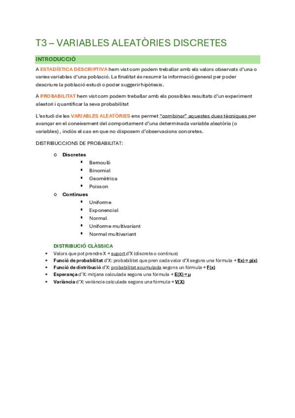 Apuntes / Resumen - Estadística I: Tema 1, Tema 2, Tema 3, Tema 4