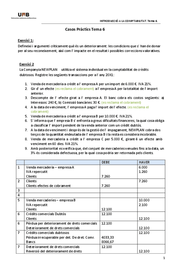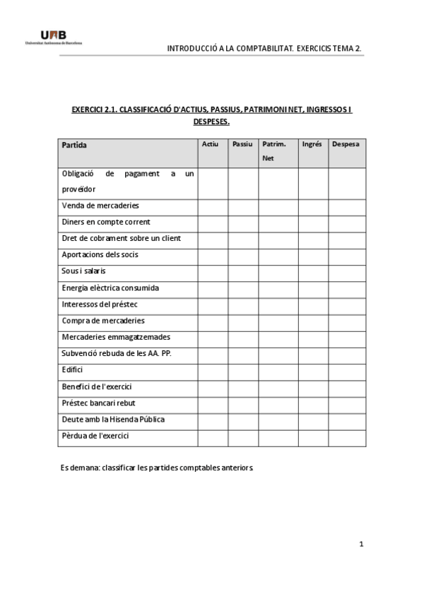 EXERCICIS INTRODUCCIÓ A LA COMPTABILITAT