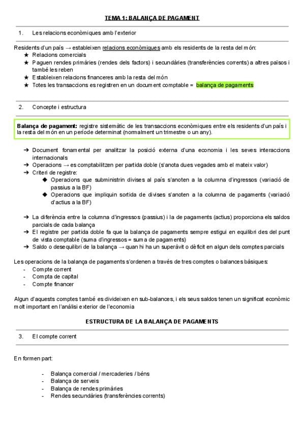 PARCIAL ECONOMIA INTERNACIONAL - Tema 1 (en català), tema 2 i meitat tema 3 (en castellà)