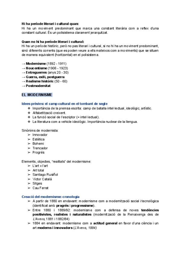 He publicado nuevos apuntes de 1º Literatura Catalana del Segle XX, I: Modernisme.pdf
