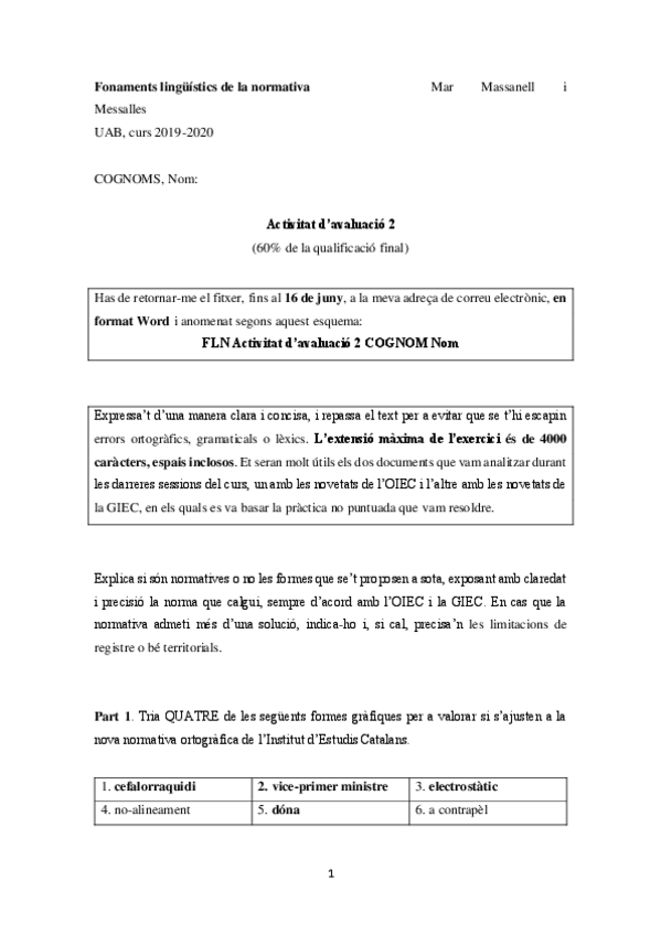 He publicado nuevos apuntes de 2º Fonaments Lingüístics de la Normativa: FLN-Activitat-davaluacio-2.pdf