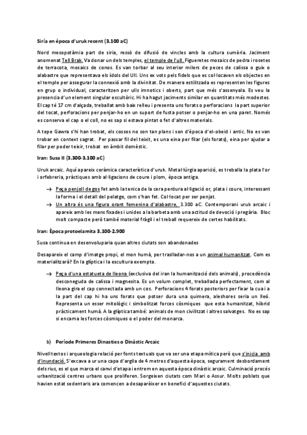 uruk recent, susa II, protoelamita, primeres dinasties, khafadjé, taules votives, arquitectura civil i escultura.