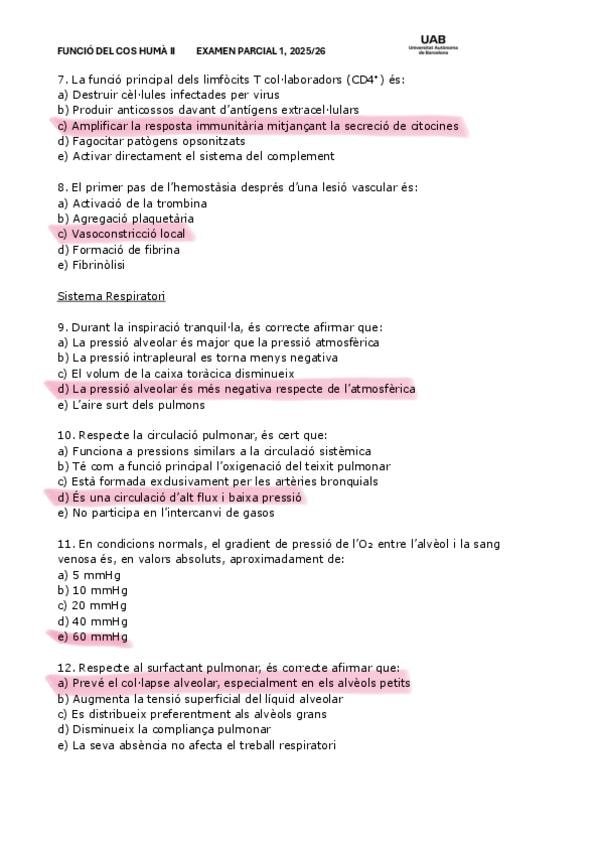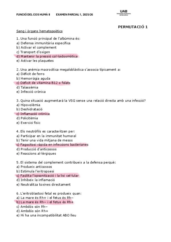 Examen funcion II 1r parcial. Con respuestas.