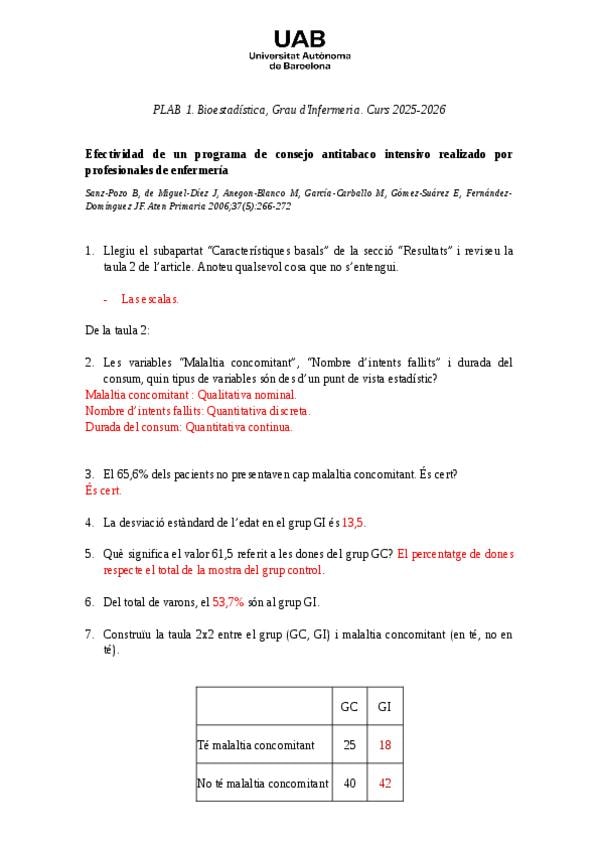 Practica Bioestadistica sobre un articulo con respuestas.