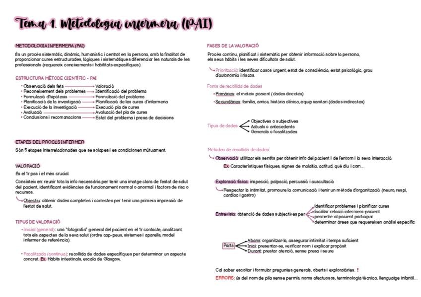 Apuntes parcial Metodología infermera en Castellano