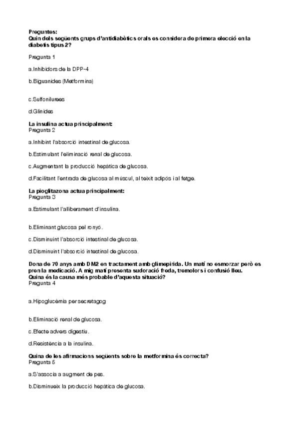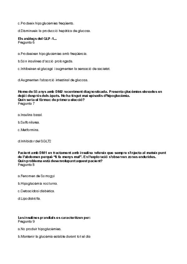 Tabla Resumen del T.9 parte 1, farmacologia de la diabetis en catalán.
