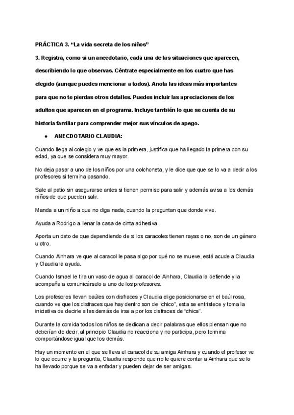 Práctica tres sobre la vida secreta de los niños