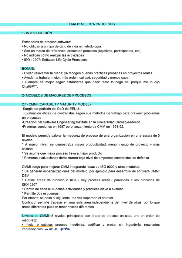 He publicado nuevos apuntes de 3º Ingeniería del software avanzada: T6MejoraProcesos.pdf