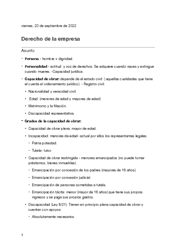 He publicado nuevos apuntes de 1º Derecho de la Empresa: derecho