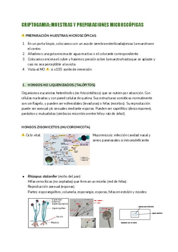 Apuntes de las primeras prácticas (criptogamia) de Plantas de Interés Biosanitario.