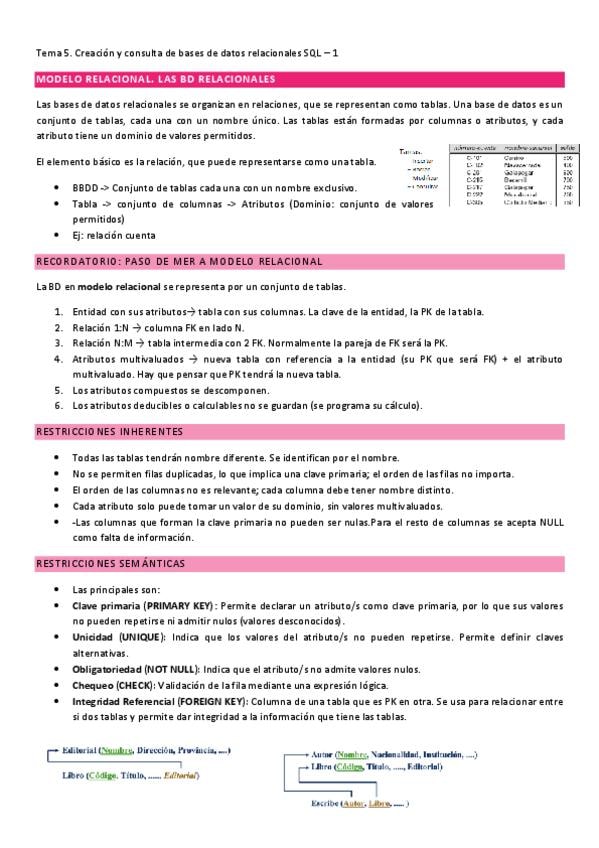 Apuntes tema 4 a y b de introducción a la programación y a las bases de datos. ES LA PARTE DE BASES DE DATOS