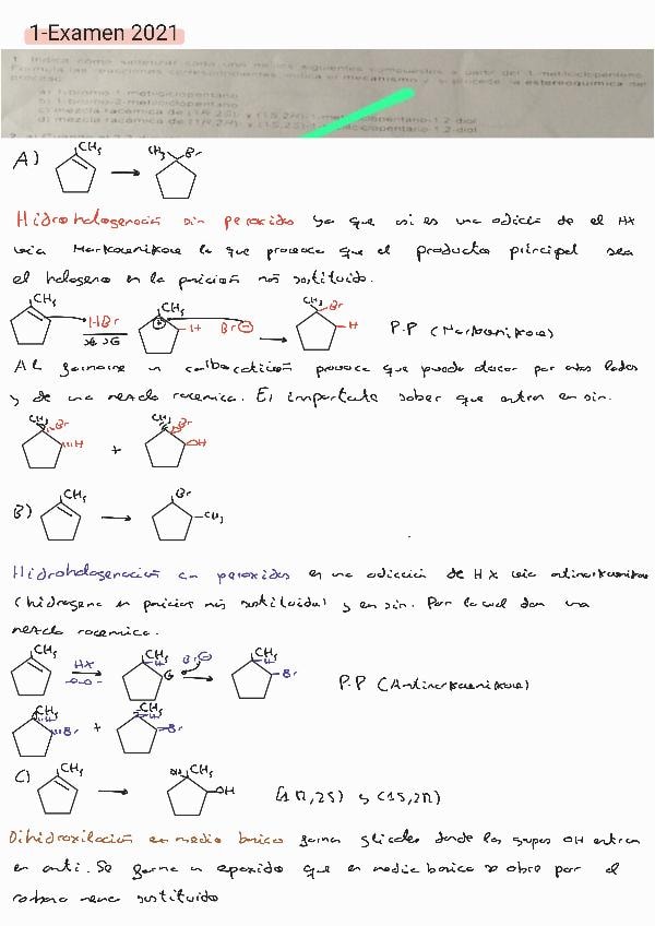 Exámenes Orgánica + Resumen Mecanismos + Ejercicios
