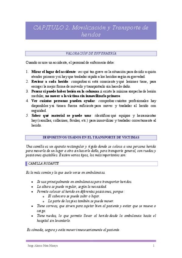 He publicado nuevos apuntes de 2º ENFERMERÍA CLÍNICA EN LA EDAD ADULTA. SITUACIONES AGUDAS Y DE EMERGENCIA: Capitulo-2.-MovilizacionTransporteHeridos.pdf