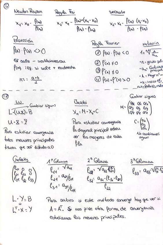 Están todas las formulas que necesitas saber para el examen de métodos numéricos del TEMA 1 al TEMA 5, además de las verificaciones de convergencia de cada método.